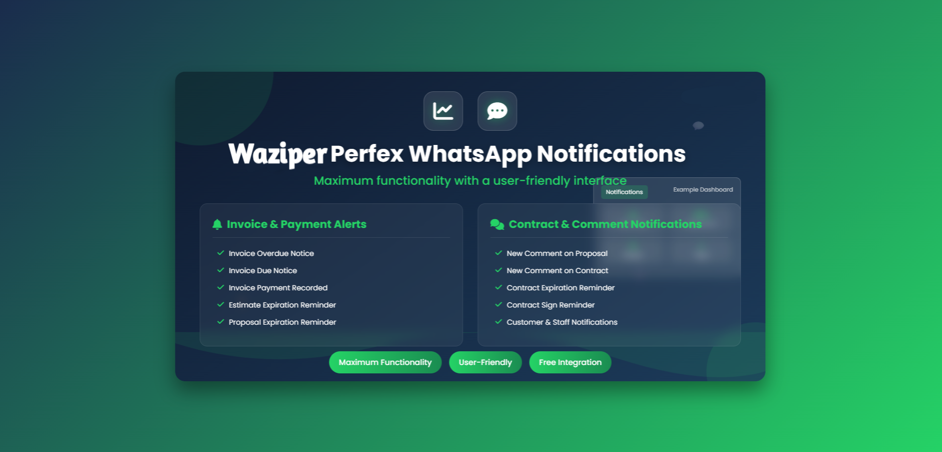 With the Perfex WhatsApp Notifications Dashboard, you can: